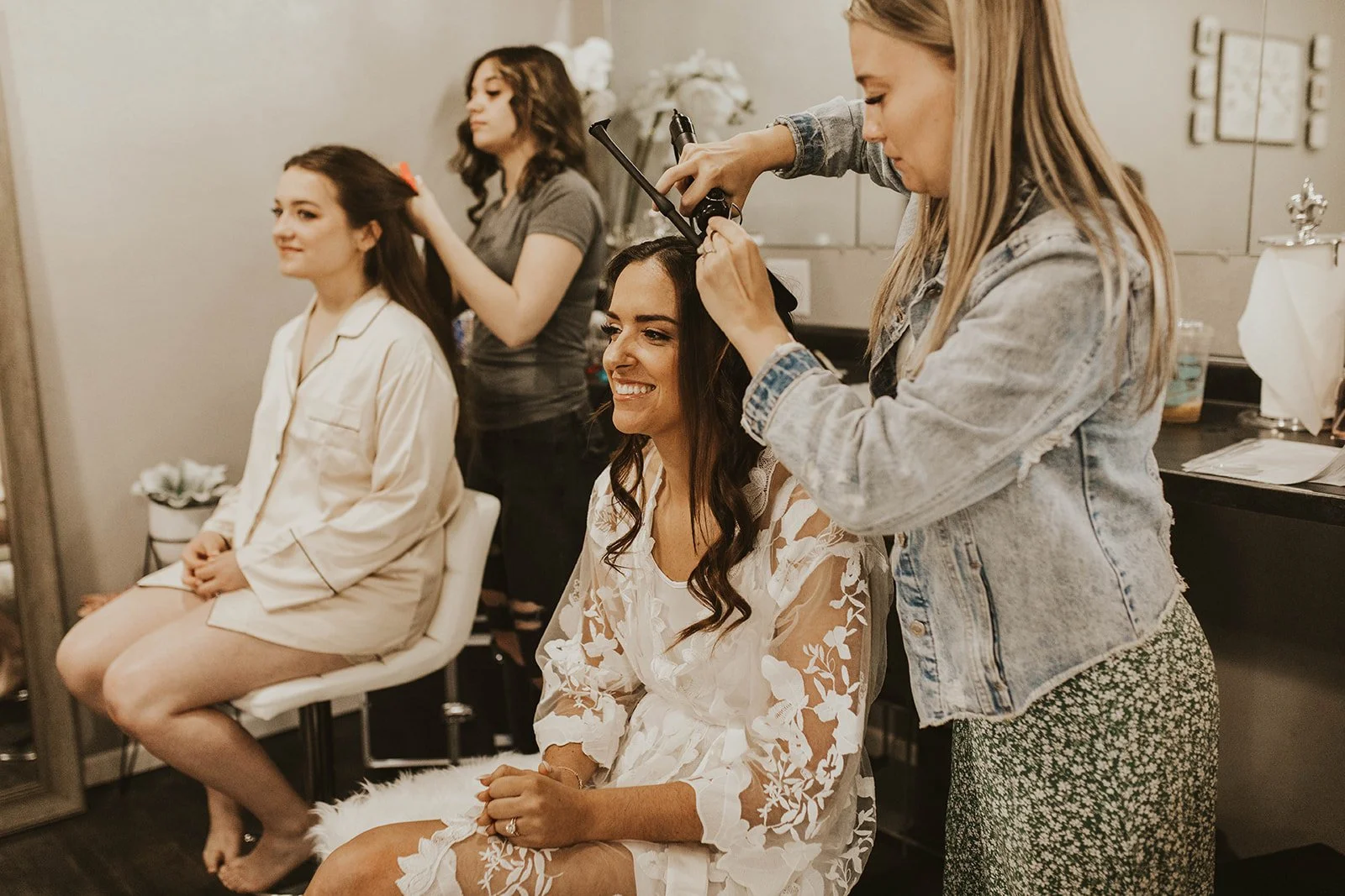 Unless time and travel fees are not an issue within your timeline or budget. (Or if you just have a small intimate group of ladies.) Oehme Oasis suggests that HAIR is done offsite. It makes for a much better use of your time in the morning if your entire tribe goes to your favorite salon. In doing so, a group of ladies can get their hair done all at one time VS having just 1 or 2. PLUS some of the “travel fees” we have been seeing lately are quite LARGE!